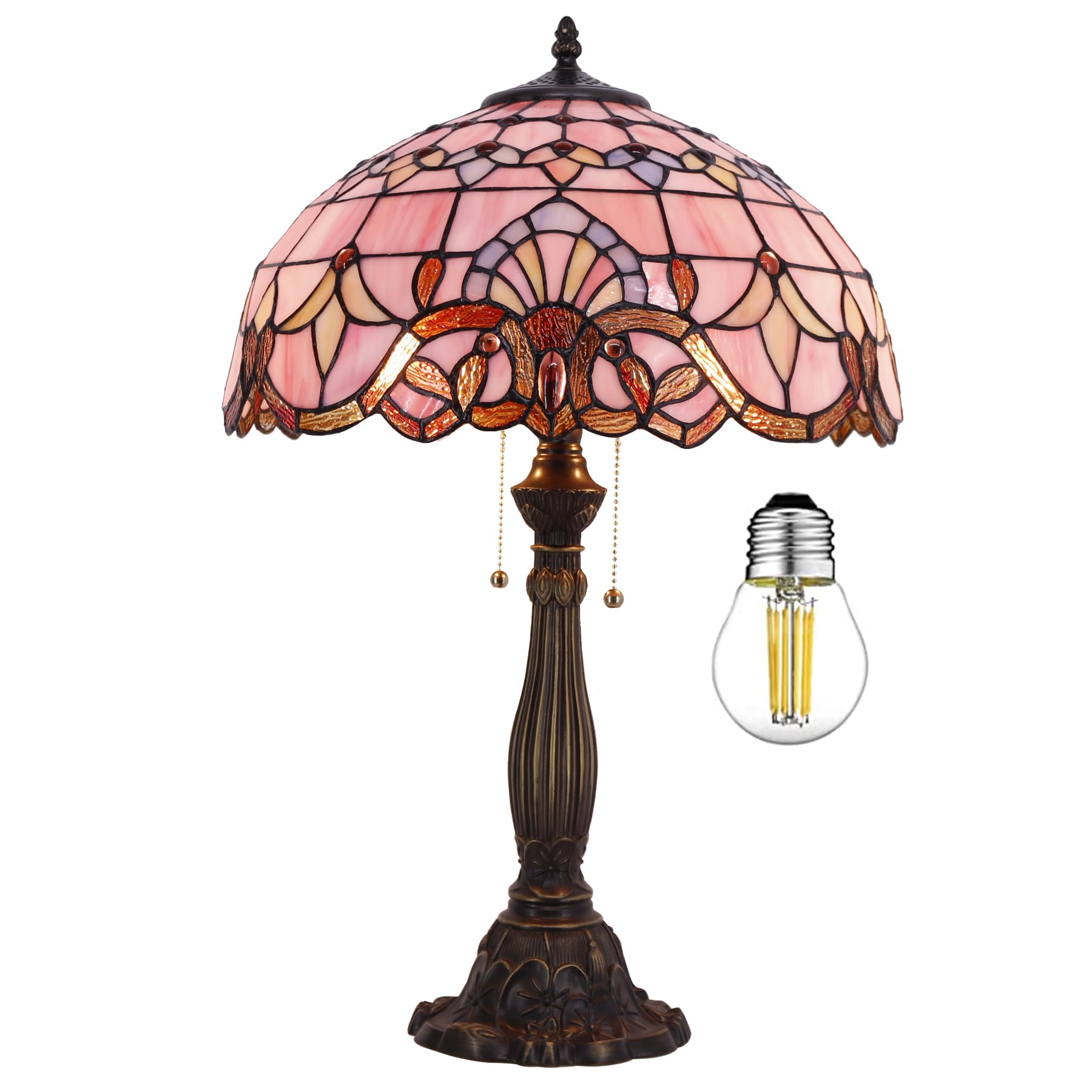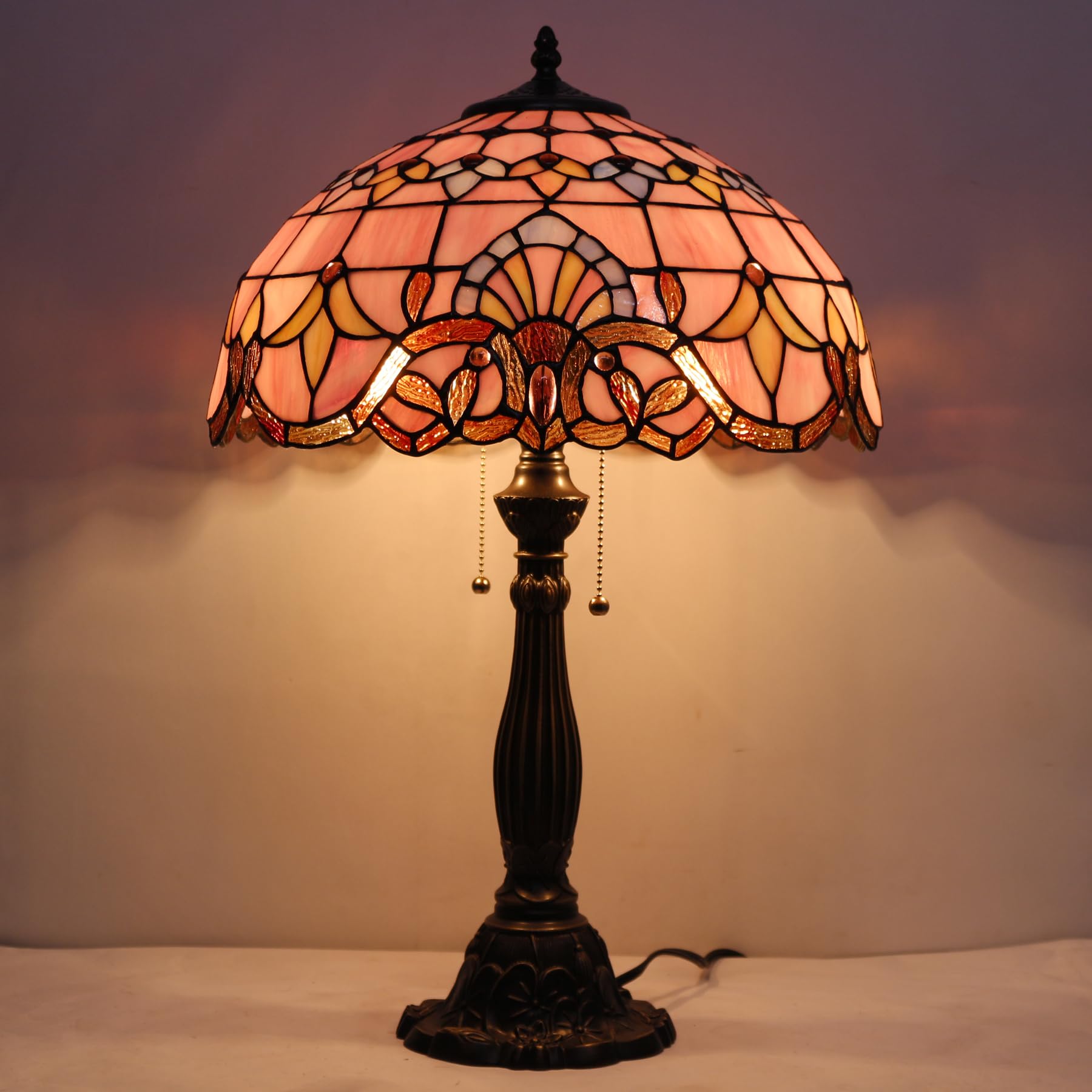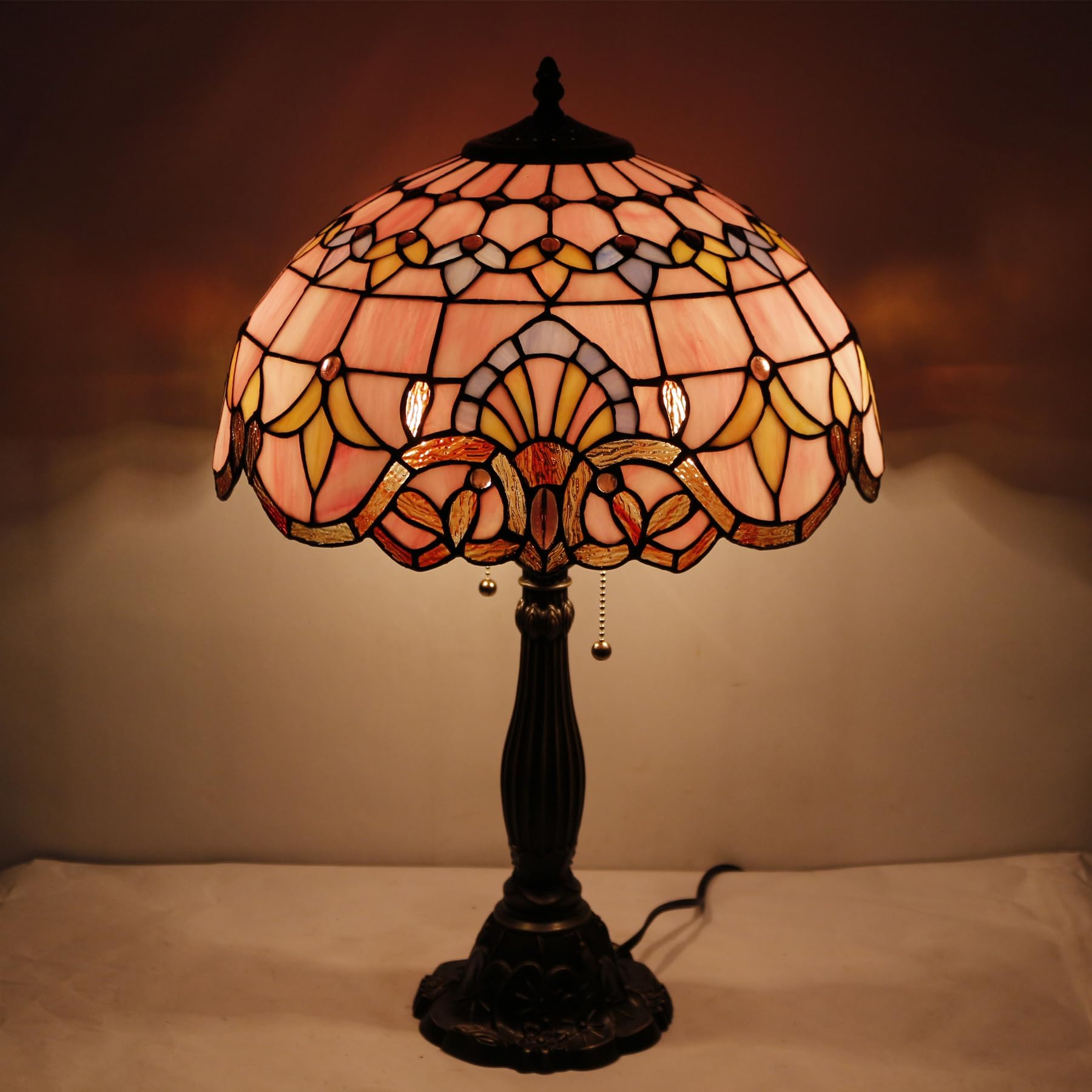 Flumy® - Tiffany Lamp Pink Stained Glass Baroque Bedside Table Lamp Style Desk Light 16X16X24 Inches Decor Bedroom Living Room Home Office