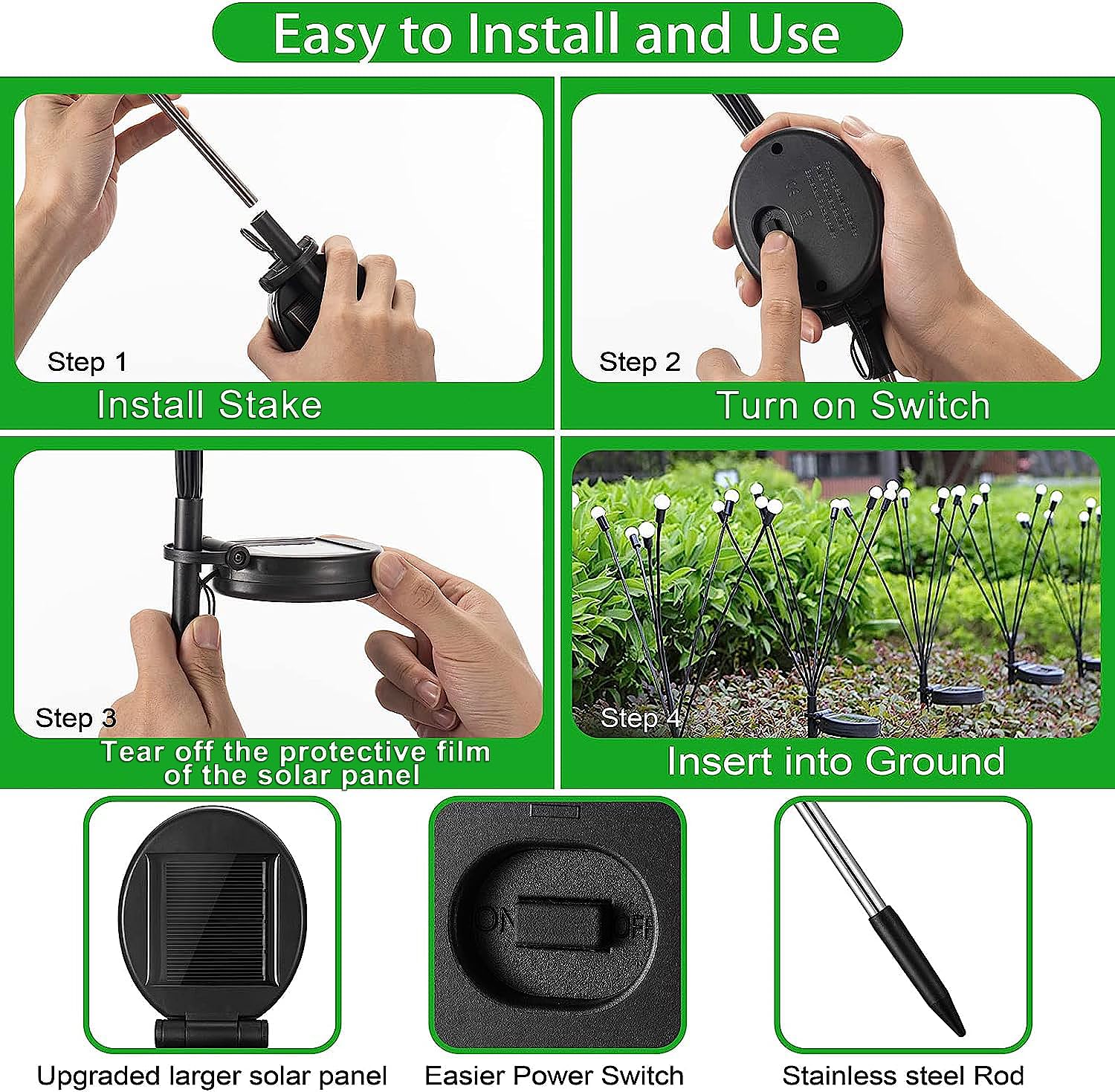 Flumy Solar Garden Lights, 2 Pack Solar Lights Outdoor with Big Bulbs, Waterproof Solar Swaying Lights, Firefly Lights for Yard, Patio, Pathway