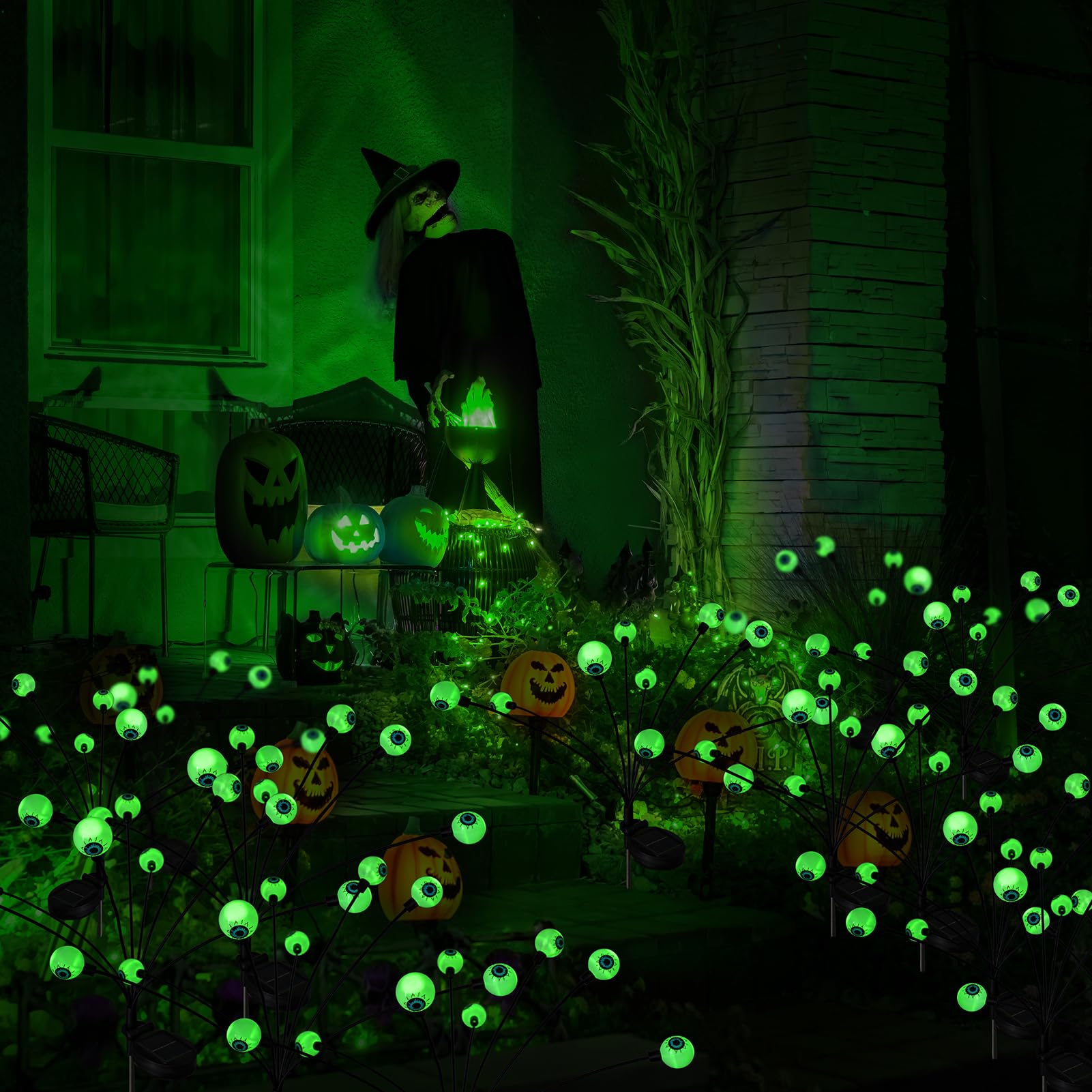 - 【2024- UPGRADED SCARY HALLOWEEN DECOR】Come and decorate your crazy Halloween Party! 3D design and swaying eyeball appear more three-dimensional and realistic.The Green eyes are perfectly combined with the eerie green glow, easily create a horror atmosphere. Use this eyeball swaying firefly lights for a perfect outdoor dinner or Halloween party.