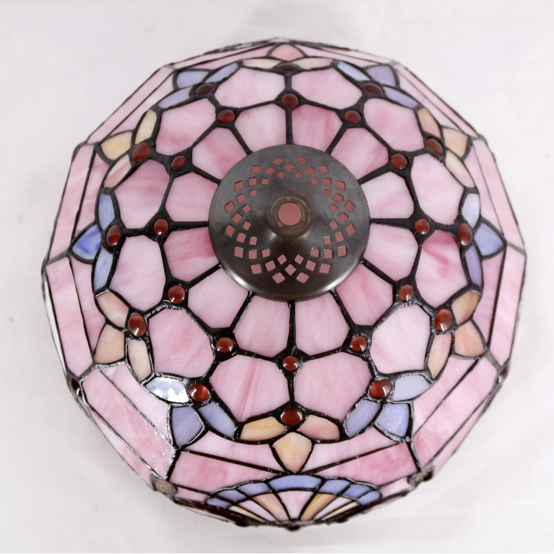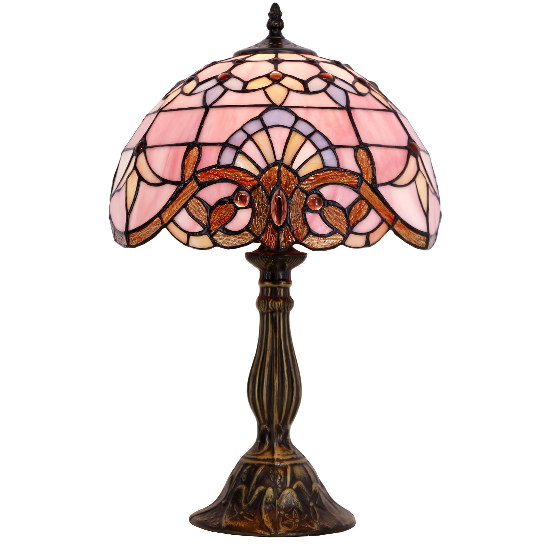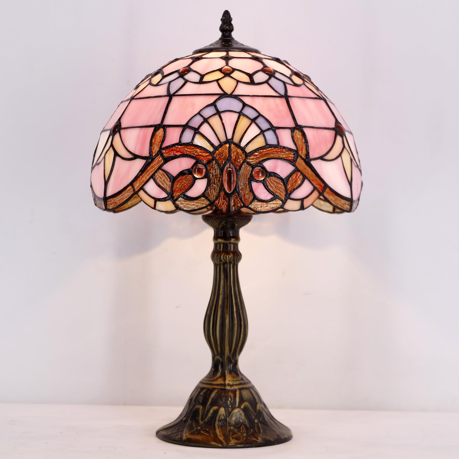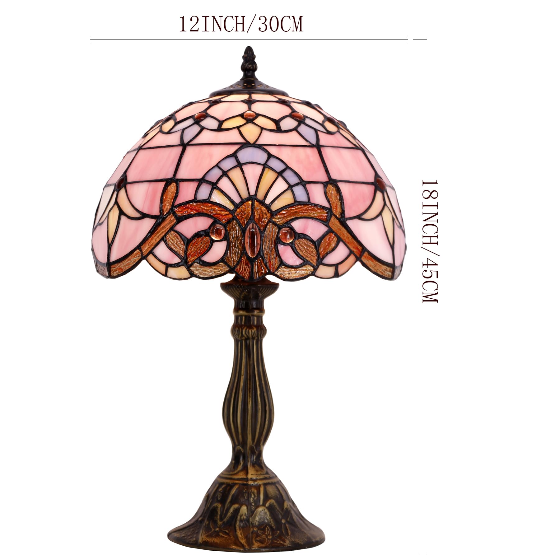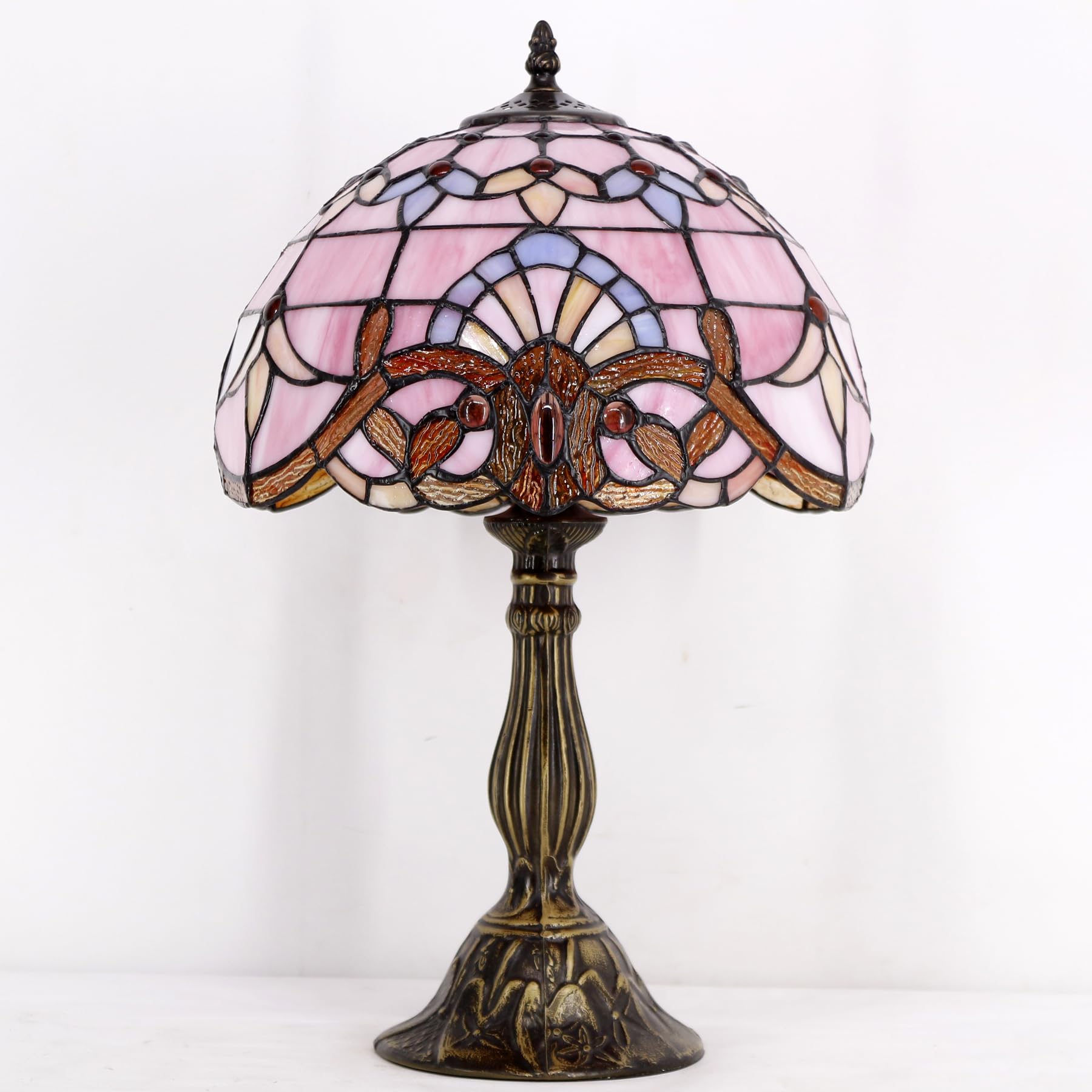 Flumy® - Tiffany Lamp Stained Glass Table Lamp 12X12X18 Inch Pink Baroque Style Lavender Bedside Reading Desk Light Decor Bedroom Living Room Home Office