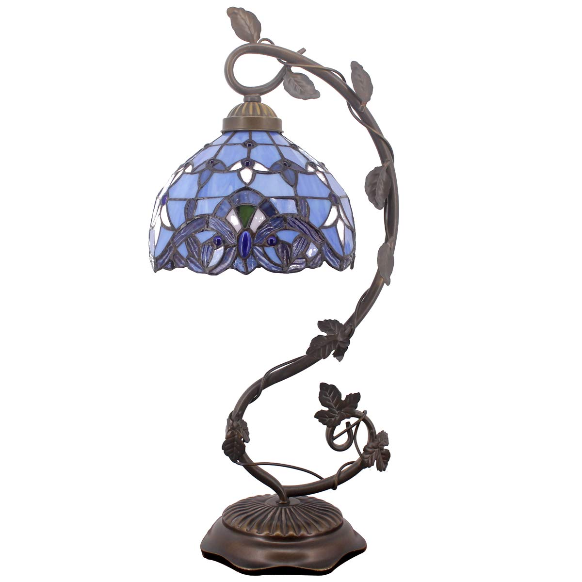 - Design: The lampshade wide 12 inch (30cm) , The table lamp height 18 inch (45cm). The metal base finished with antique green bronze, weight 1.0KG, wide 6 Inch (15CM) . UL listed, On/Off Switch on cord, 12 Inch far away from base, and 48 Inch far away from plug.